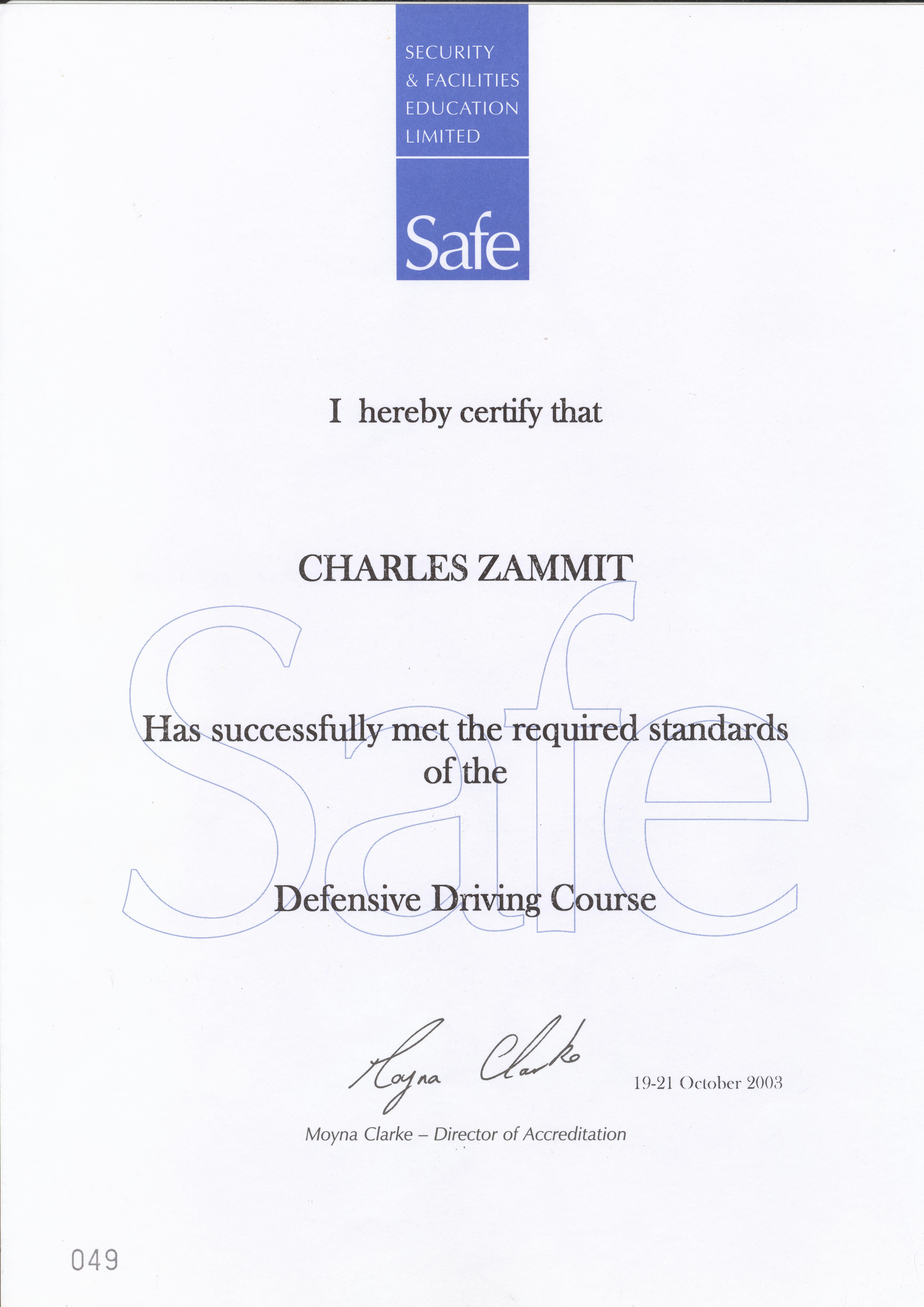 - Chauffeur has specialist knowledge of security manoeuvres, is fully trained in defensive and evasive driving techniques, and awareness of the vehicles' capabilities and safety features - both active and passive.